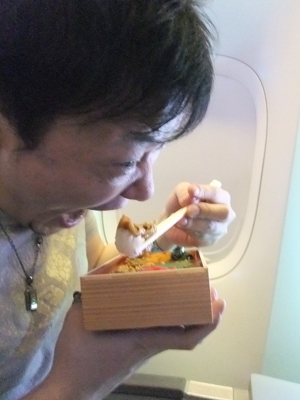 空港内で腹拵えしたはずなのに、機内でもバッチリ空弁をいただくおっさん。