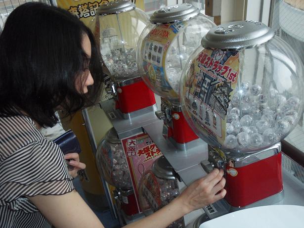 ■ 通天閣の中でガチャガチャをするみきちゃん